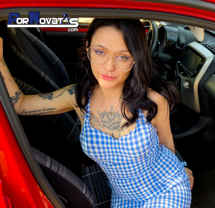 Povnovatas outdoor. Joven morena española con gafas y muy cachonda follando en el coche con Victor Bloom
